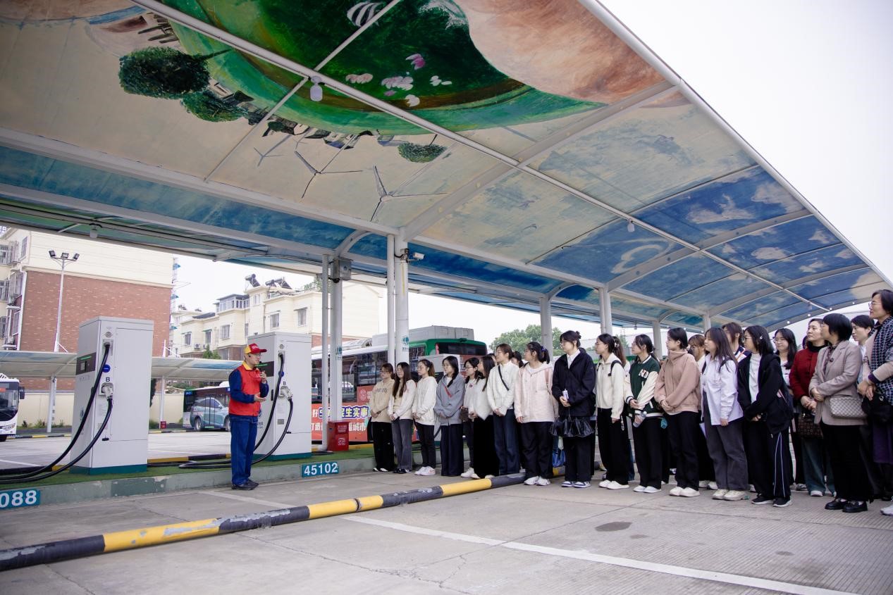 接着,师生前往国能神皖马鞍山发电有限责任公司龙上光伏发电站、马鞍山市经开区公交车充电站、采石矶邮轮码头港口岸电站进行实地考察。国网马鞍山供电综合能源公司华云梅、梅田向师生介绍了马鞍山供电公司的新兴产业项目和充电站建设运营情况,宣传了国网马鞍山为实现国家“双碳”目标作出的重要贡献。
