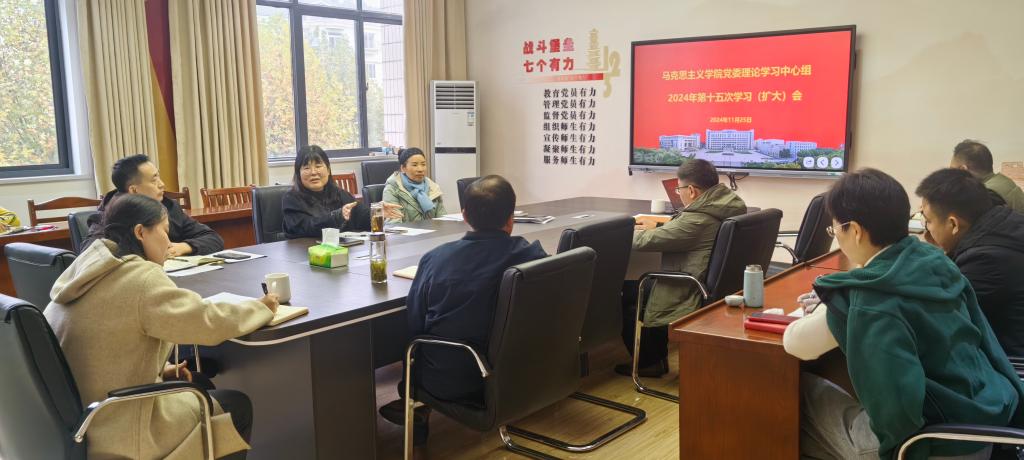 在综合楼324会议室召开2024年党委理论学习中心组第十五次学习(扩大)会议。学院党委委员、党支部书记、科级干部参加会议。会议由学院党委书记徐惠主持。