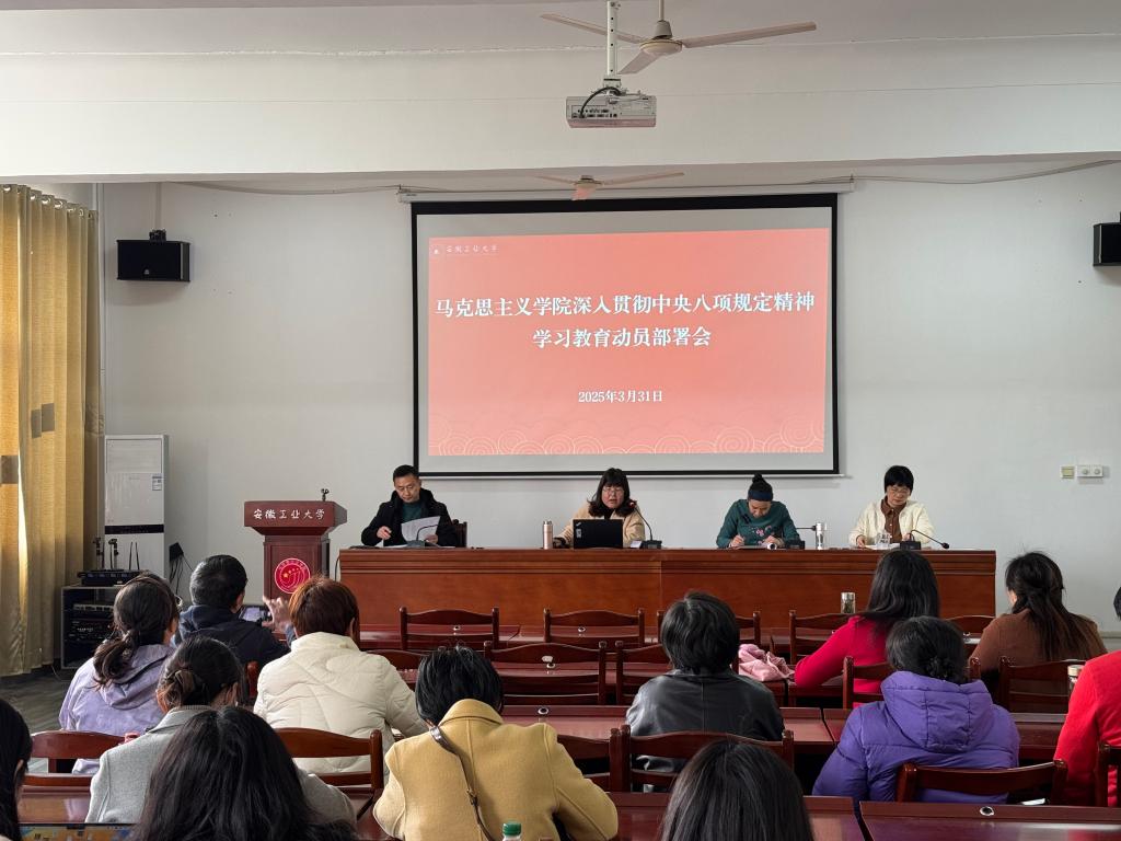 会议深入学习了习近平总书记关于加强党的作风建设的重要论述和习近平总书记关于深入贯彻中央八项规定精神学习教育的重要讲话和重要指示精神;传达学习了中央党的建设领导小组会议精神、中共中央办公厅印发《关于在全党开展深入贯彻中央八项规定精神学习教育的通知》以及安徽省委党的建设工作领导小组会议精神和校党委工作部署会会议精神,深入学习了中央八项规定及其实施细则精神,对学院深入贯彻中央八项规定精神学习教育进行全面动员部署。