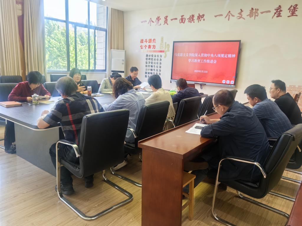 在学院324会议室召开深入贯彻中央八项规定精神学习教育工作推进会暨党委理论学习中心组2025年第五次学习(扩大)会议。学院党委委员、党支部书记参加会议。会议由学院党委书记徐惠主持。