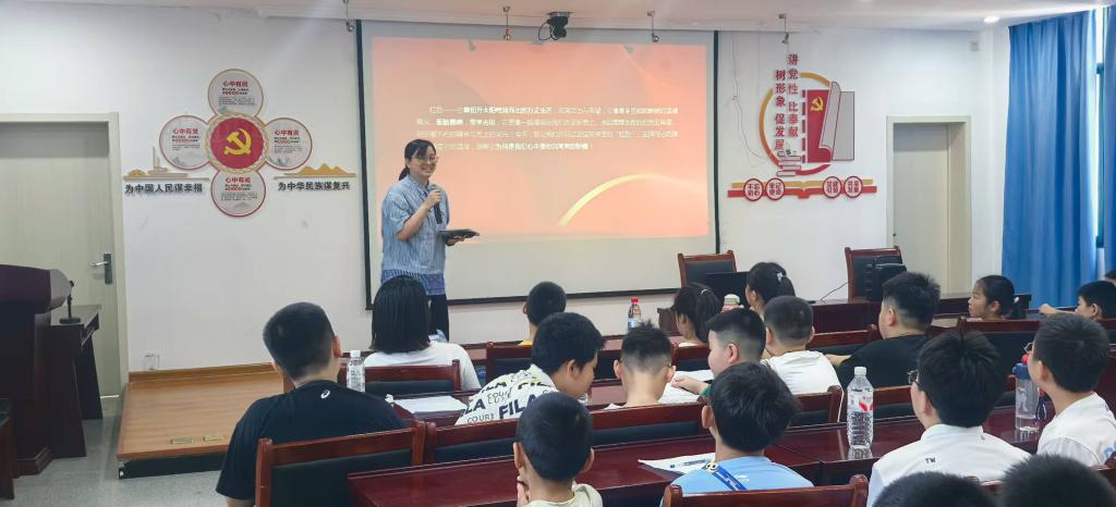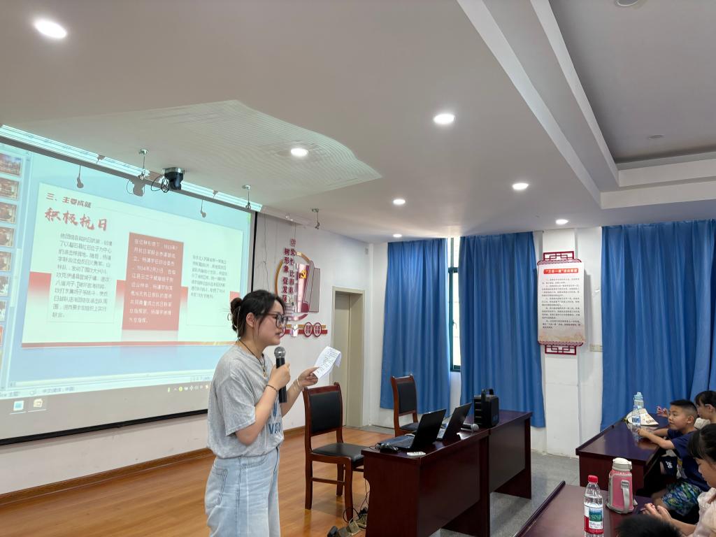宣讲团成员俞露露为同学们梳理了抗战时间轴,从九一八事变到日本发动全面侵华战争,再到抗战胜利,她以深入浅出的讲解方式引导孩子们思考五星红旗与红领巾的深刻内涵,号召同学们从点滴做起,以实际行动传承抗战精神,将爱国情怀融入日常。