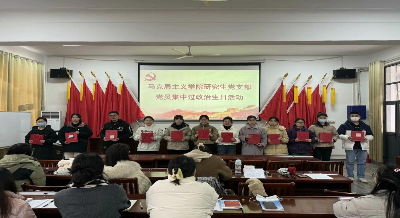 研究生党支部召开党员大会暨举行党员集中过政治生日主题党日活动。会议由支部书记苗云飞主持,学院党委书记徐惠出席会议,支部全体党员参会。