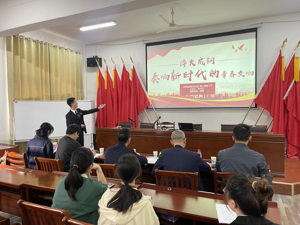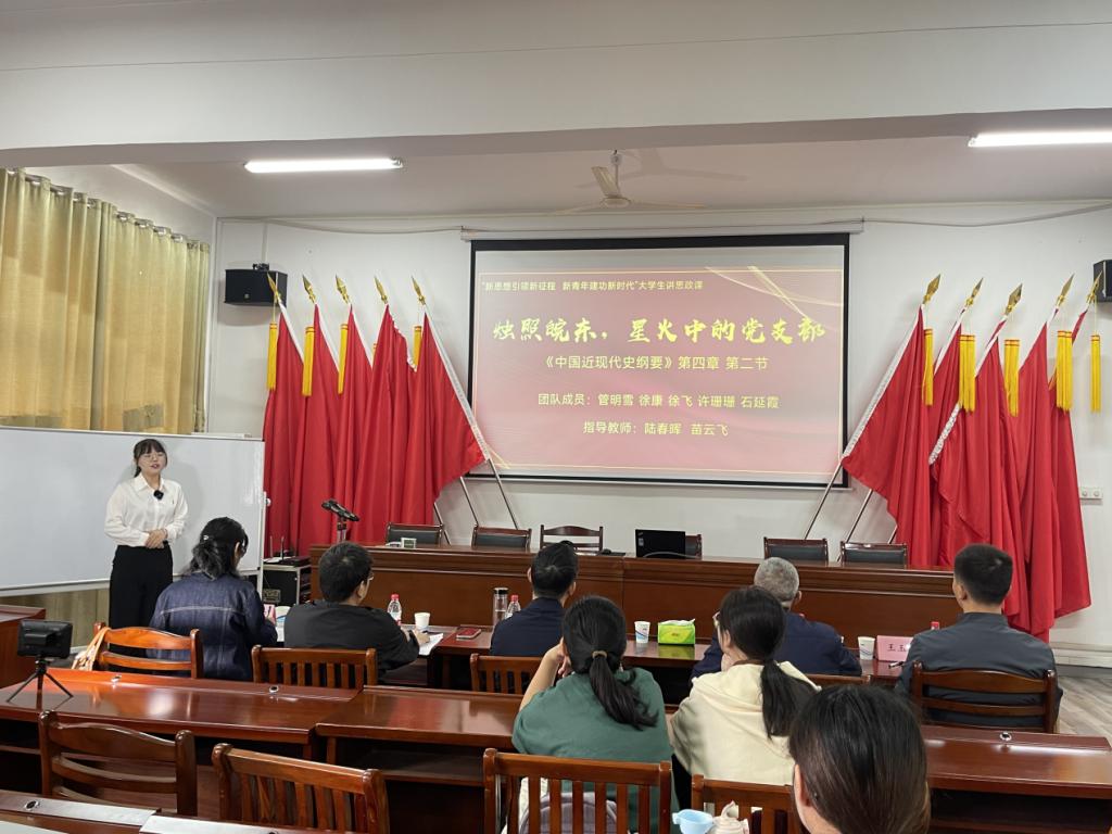比赛按课程分两组进行。以《习近平新时代中国特色社会主义思想概论》《中国近现代史纲要》《思想道德与法治》等课程为一组的团队选手和以《毛泽东思想和中国特色社会主义理论体系概论》《马克思主义基本原理》《形势与政策》等课程组成的团队,围绕“新思想引领新征程 新青年建功新时代”主题,从教学内容、教学设计、教学风格、教学课件等方面进行了精彩展示。比赛现场气氛热烈,选手们认真准备,既有现场的理论阐释,又有行走的思政课的深入调研和精彩解说;既有团队某一位成员激情阐释,又有团队成员轮流上场的慷慨陈词。各团队紧扣课程特点与目标,充分挖掘育人元素,根据指导老师的悉心指导,大胆创新,精心设计,以饱满的热情,自信的表达,生动展现了漫蛙