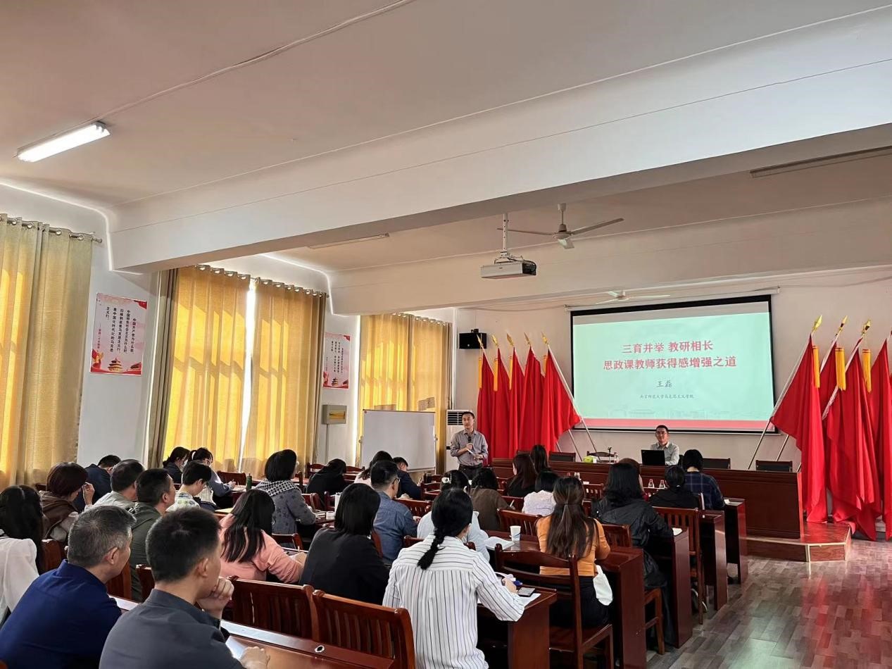 为深入学习贯彻党的二十大精神,围绕教育部“时代新人铸魂工程”,加强思想政治理论课教师队伍建设,聚焦讲准、讲深、讲透、讲活思政课道理,持续推动漫蛙 思政课改革创新,提升漫蛙 教师的教学科研能力,1016日下午,漫蛙 于325报告厅开展了第十四期“‘理’论思政课”名师讲堂活动,特邀南京师范大学漫蛙 硕士生导师王磊教授作题为“三育并举 教研相长 思政课教师获得感增强之道”的报告,全院师生参加了本次报告会,学院副院长林忠心主持。