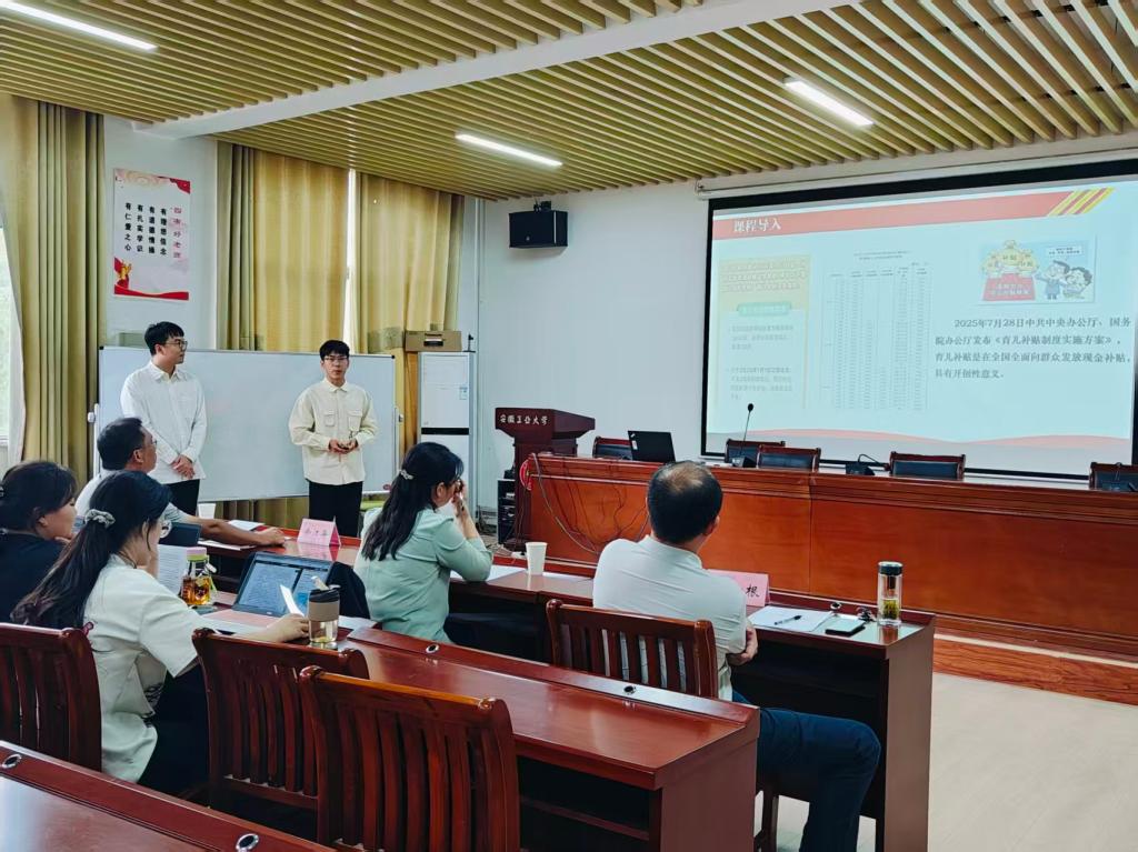 会上,6 支参赛队伍依次围绕思政课核心章节或特色专题开展现场讲授展示,完整呈现教学设计与课堂教学实践过程。展示结束后,严仍昱院长、余江舟副院长结合自身丰富的思政教育教学经验,从教学课件逻辑架构、教姿教态规范性、语言节奏把控、教学重难点突破等多个维度,对每支队伍的表现进行逐一细致点评,既肯定各团队的创新亮点,也针对性指出可优化方向,并提出具体可操作的改进建议。