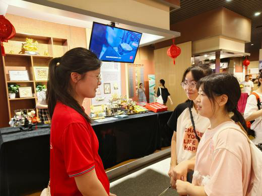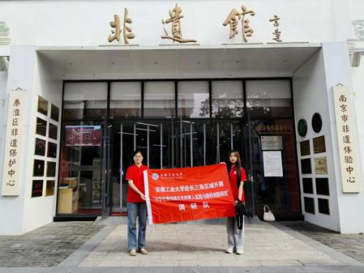秦淮·非遗馆位于南京市秦淮区,是南京市非遗体验中心、秦淮区非遗保护中心。作为展示和传承非物质文化遗产的场所,非遗馆一直注重保护和传承这些宝贵的文化遗产,通过展览、表演、手工艺制作等方式,让更多人了解和认识非物质文化遗产。实践队员深入非遗馆,在集图文、实物、视听、手作和交流于一体的各个体验区及展演区感受古老文化与年轻灵魂的交融。同时,在与工作人员的交流中,得知南京一直以来积极普及非遗文化的教育,队员们不禁感叹道,优秀的传统文化要从“娃娃”抓起。