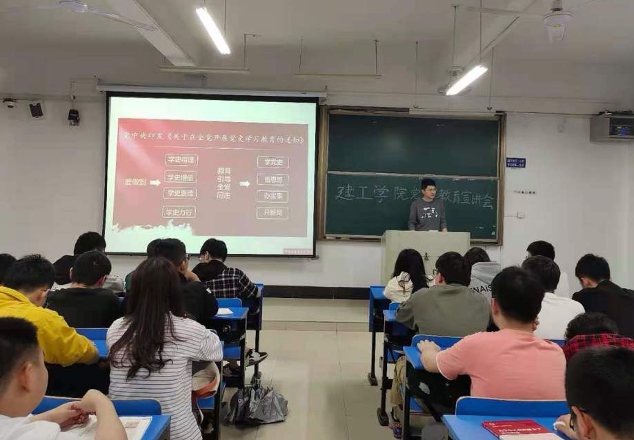 研究生党史教育理论宣讲队成员赵太平为建工学院170多名学生骨干进行了主题为《奋斗百年路 启航新征程——从百年党史中汲取智慧和力量》的党史教育宣讲。