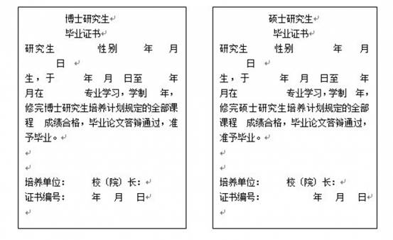 博士研究生毕业证书 硕士研究生毕业证书