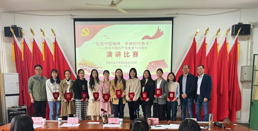 举行了“弘扬中国精神,争做时代新人”研究生党史学习教育演讲比赛,本次比赛邀请了校学生工作处卫军帅老师、校团委葛琎老师等担任评委,马克思主义理论专业全体研究生参加和观看了比赛。
