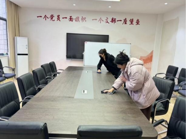 活动期间,志愿者们对教室、办公室、期刊阅览室、学术报告厅等主要教学办公及活动场所进行了全面的卫生打扫。同学们以四人为一小组,分工明确、各司其职,秉持着热情踏实的态度擦拭桌子、清扫地面以及整理桌椅等,对指定区域进行了彻底的清理,使教学活动场所焕然一新。忙碌的志愿者们认真践行“奉献、友爱、互助、进步”的志愿服务精神,成为美丽和谐校园建设中的一道亮丽的风景线,用自己的实际行动为保护、美化环境,传承雷锋精神献出了自己的一份力。