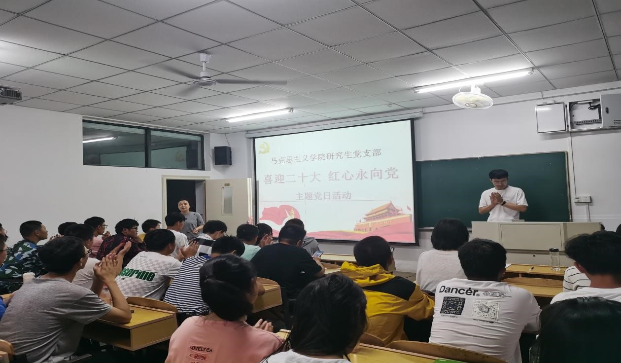 研究生党支部与能环学院能动专业22级本科生于9月29日晚在佳山校区第一教学楼502教室开展“喜迎二十大,红心永向党”主题党日活动。研究生党支部全体党员和能环学院能动专业22级本科生参加了此次活动,活动由研究生党支部书记苗云飞主持。