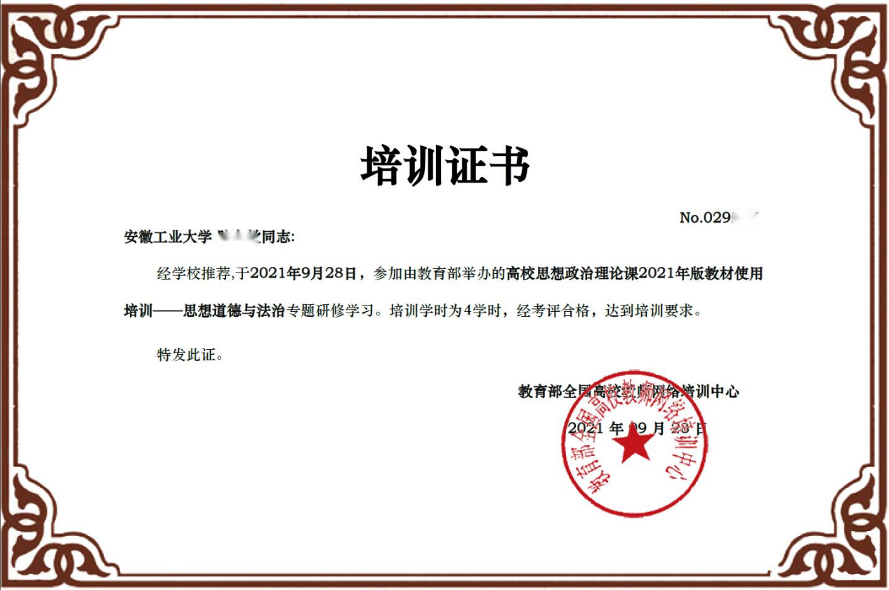 全体思政课教师参加了在老综合楼312会议室设置的校级视频直播分会场五个批次的培训,培训结束经过考核全部取得培训合格证书。