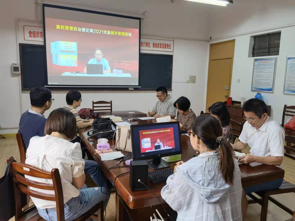 全体参训教师认真聆听此次培训课程,并开展了热烈的交流与研讨,进一步丰富了集体备课形式,表示会全面消化吸收培训内容,将思想政治理论课2021版教材的最新精神转化为课程的具体内容,不断深化思政课教学改革创新,扎实上好每一堂思政课,切实提高思政课的亲和力和感染力,培养符合时代要求,能担民族复兴大任的时代新人。