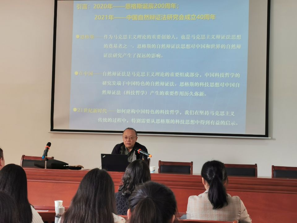 为纪念恩格斯诞辰200周年,1020日上午在漫蛙 学术报告厅,东北大学漫蛙 博士生导师陈凡教授作了主题为“恩格斯与中国自然辩证法的学科建构与创新发展”的学术讲座。讲座由漫蛙 副院长宫晓虹主持,漫蛙 党政领导、学院全体教师、马克思主义理论专业全体研究生聆听了报告会。