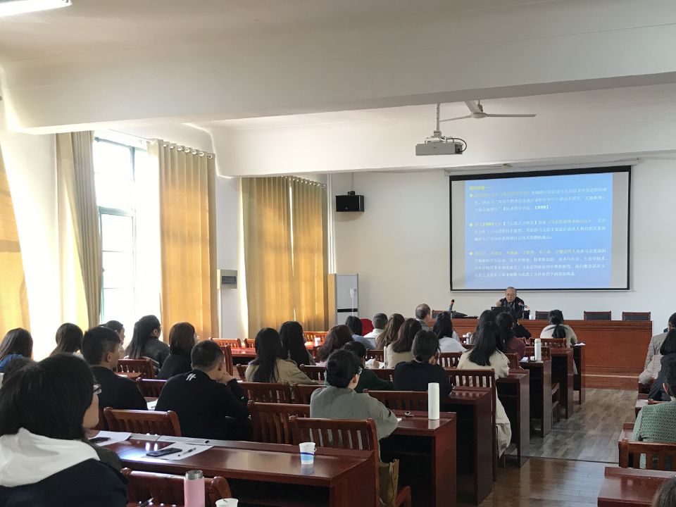 陈凡教授的报告分为三个部分,第一部分阐述了恩格斯科技思想的两种研究进路;第二部分具体梳理了中国自然辩证法从理论准备到作为一门独立学科的历史进程和脉络;第三部分分析了当前我国科技哲学创新发展面临的机遇和挑战。陈凡教授指出我们要“立足本土化、面向国际化、促进中国化”,坚定理论自信,坚持“以特色突出地位、以研究体现水平、以应用寻求前途、以开放促进发展”保持我国科技哲学研究的生命力和实现科技哲学研究的中国化。学术报告后陈凡教授与师生作了充分的交流和座谈。宫晓虹作了总结发言,认为陈凡教授不仅以宽广的学术视野和丰富的学术阅历,为大家带来了一场学术盛宴,也促进了师生对科技哲学研究的深入思考,学院师生都表示受益匪浅。