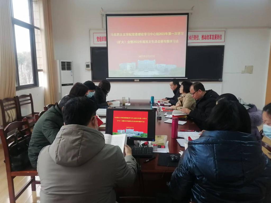 在综合楼312召开党委理论学习中心组2023年第一次学习会暨院领导班子2022年度民主生活会会前专题学习会。学院班子成员、党委委员、党支部书记、科级干部等参加学习会。会议由学院党委书记徐惠主持。