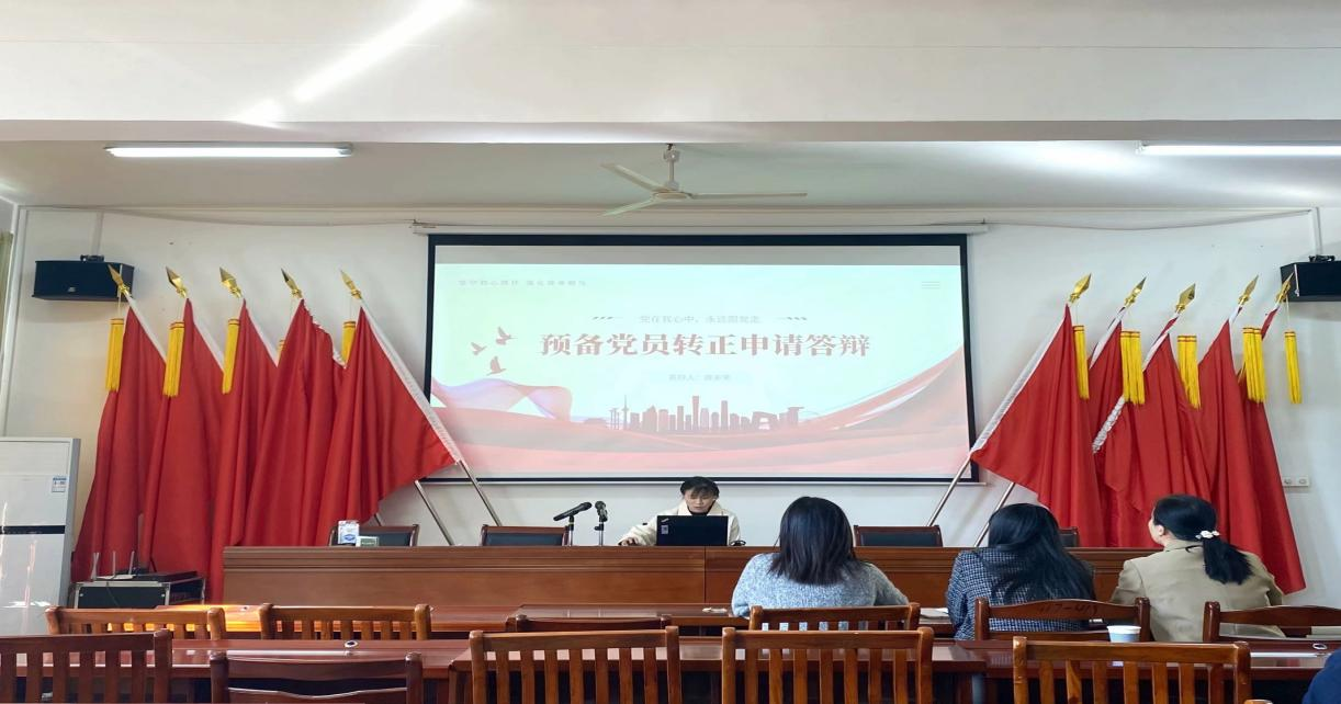 研究生党支部于2023年11月6日上午在综合楼325教室进行了预备党员转正知识测试,并召开了预备党员转正答辩会议。活动由支部书记苗云飞主持,直属团支部书记李刘薇、研究生辅导员杨婷婷、2021级班主任沈先陈担任答辩组成员,7名拟转正预备党员参会。
